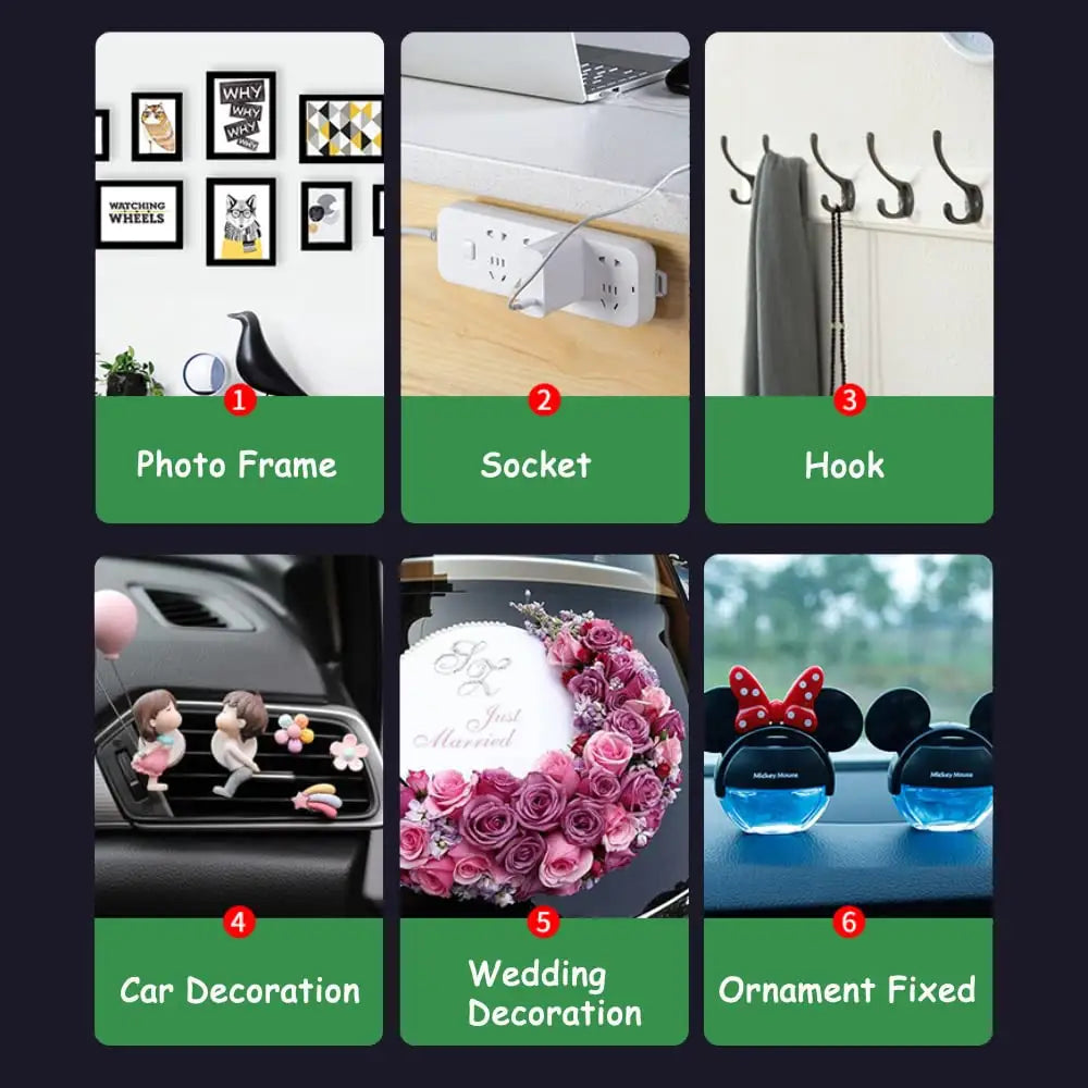 - Easy to clean and reposition without surface damage. 60*60 mm area allows the self adhesive hook to paste firmly.